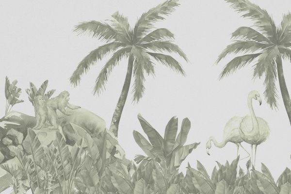 Op de afbeelding zijn apen en flamingo's te zien in de kleur groen.