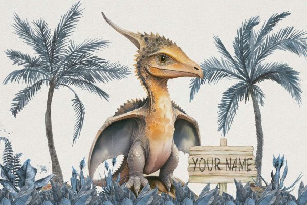 Een baby pteranodon in de blauwe jungle. Ook verkrijgbaar met naam van je kind!