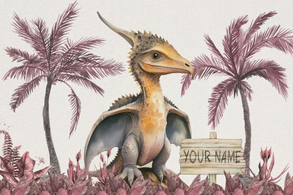 Een baby pteranodon in de roze jungle. Ook verkrijgbaar met naam van je kind!