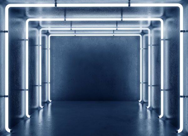 Betonnen neon verlichte garage fotobehang
