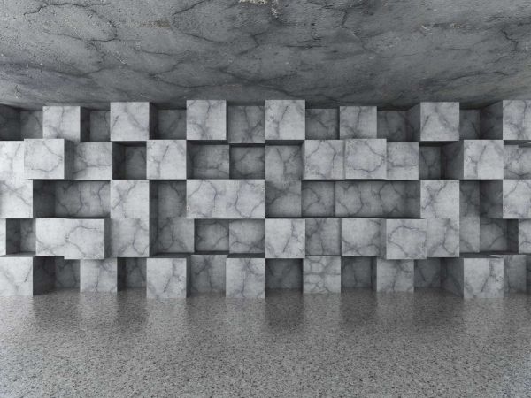 Betonnen ruimte met kubussen tegen de muur fotobehang