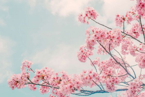 Bloesem met wolken op achtergrond fotobehang