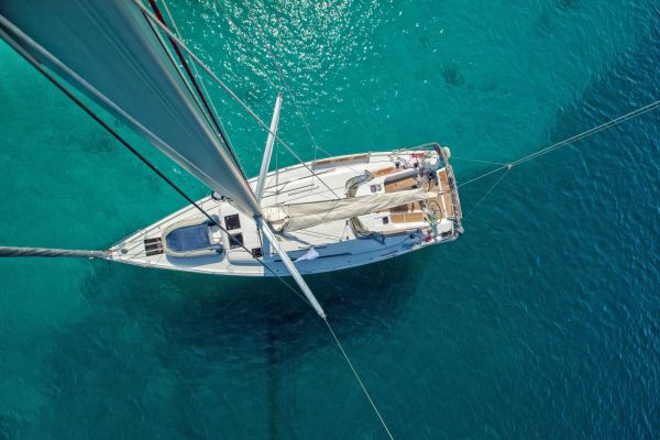 Bovenaanzicht van een zeilboot