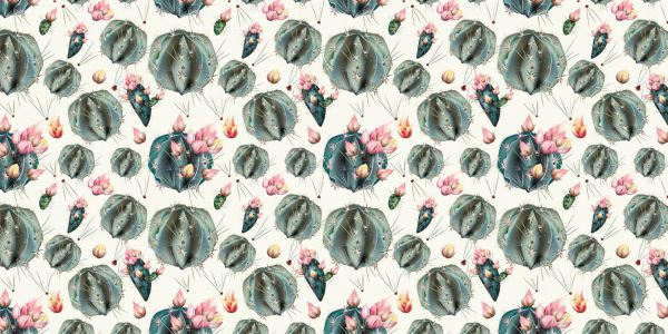 Fotobehang van cactussen met sierlijke roze bloemen geschilderd als aquarel met waterverf.