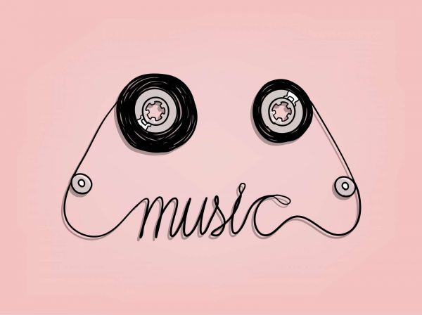 Cassettebandje met een roze achtergrond