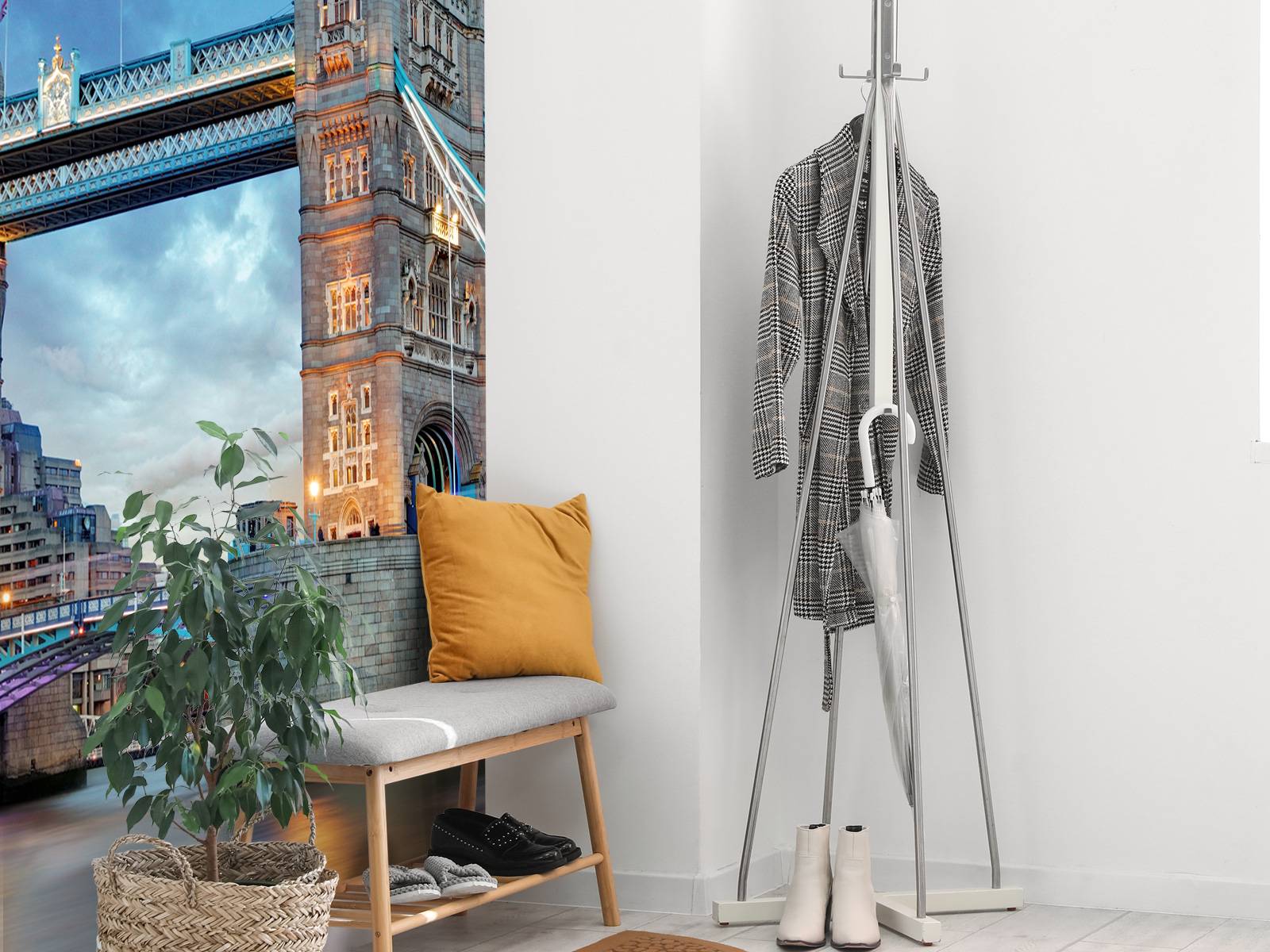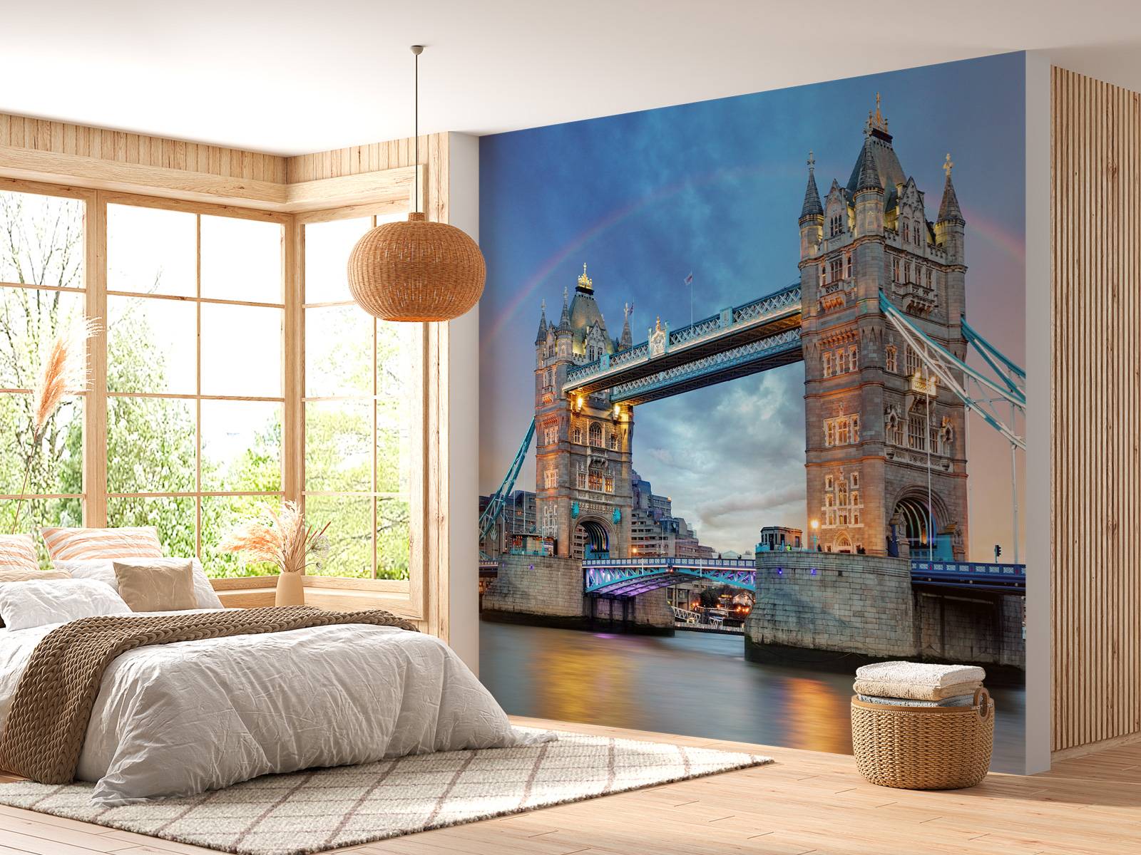 De London Tower Bridge onder een regenboog in verschillende materialen