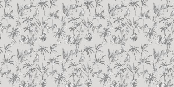 Dierenjungle patroon grijs in verschillende materialen