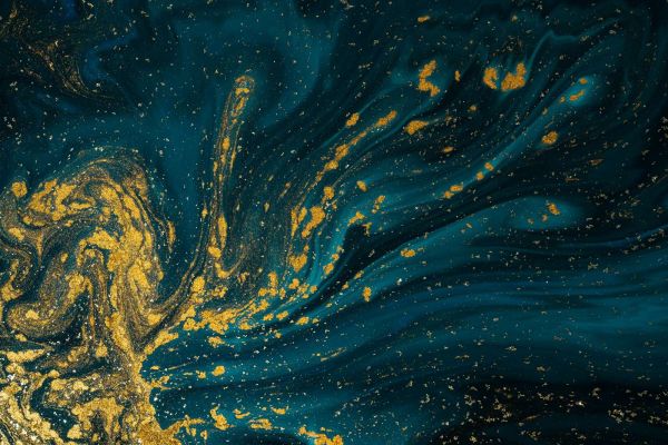 Donkerblauwe verf met goud fotobehang