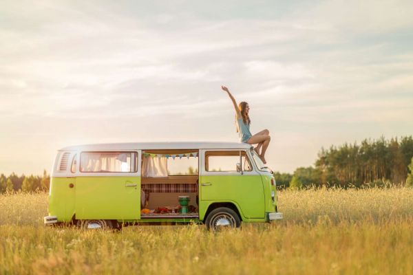 Een jonge vrouw geniet van haar rondreis in verschillende materialen