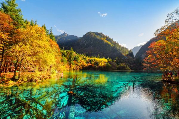 Een uniek meer tussen de bergen fotobehang