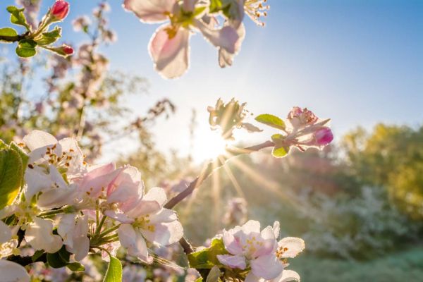 Felle Zon achter Bloesem takjes