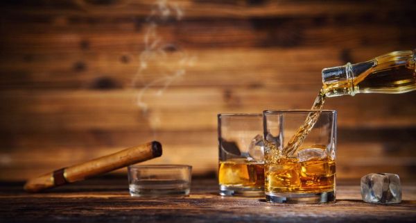Glazen whiskey met sigaren