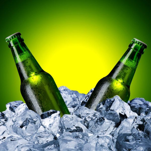 Groene bierflesjes met een groene achtergrond in verschillende materialen
