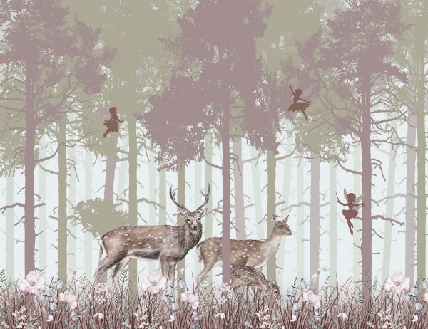 Fotobehang - Herten en feeën