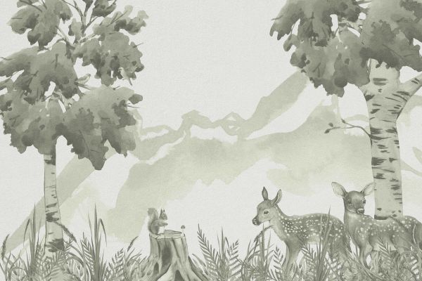 Twee schattige hertjes die het bos aan het verkennen zijn in de kleur groen.