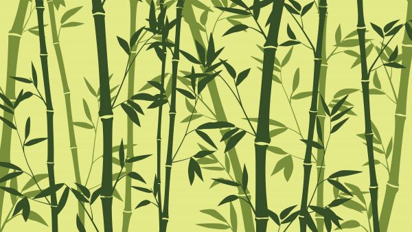 Een illustratie van bamboe stokken in verschillende kleuren groen.