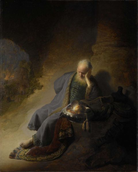 Jeremia treurend over de verwoesting van Jeruzalem in verschillende materialen