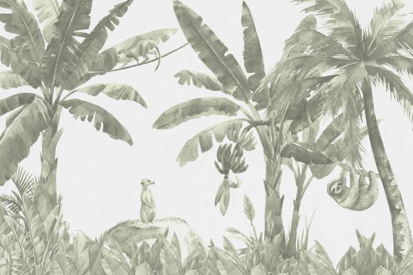Een afbeelding met allemaal kleine jungle dieren in de kleur groen.