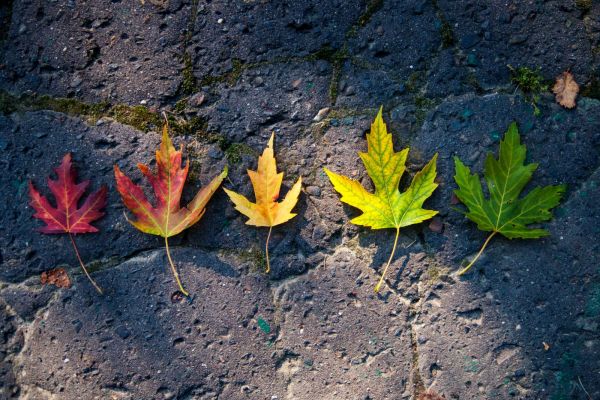 Kleurrijke bladeren in de herfst in verschillende materialen