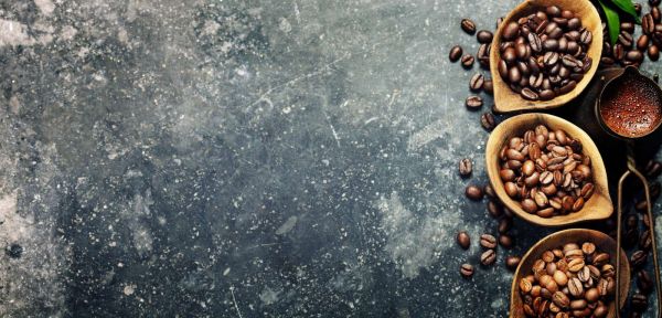 Koffiebonen met een vintage achtergrond in verschillende materialen