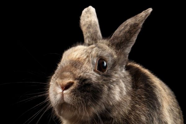 Konijn met een zwarte achtergrond