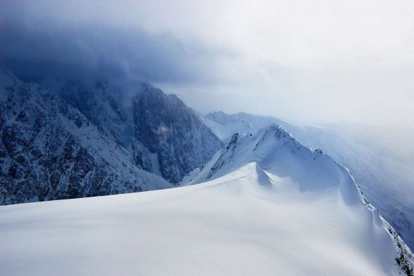 Landschap op een hoge ingesneeuwde berg fotobehang