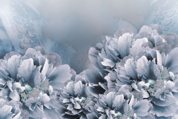 Lichtkleurige bloemen met een blauwe achtergrond in verschillende materialen