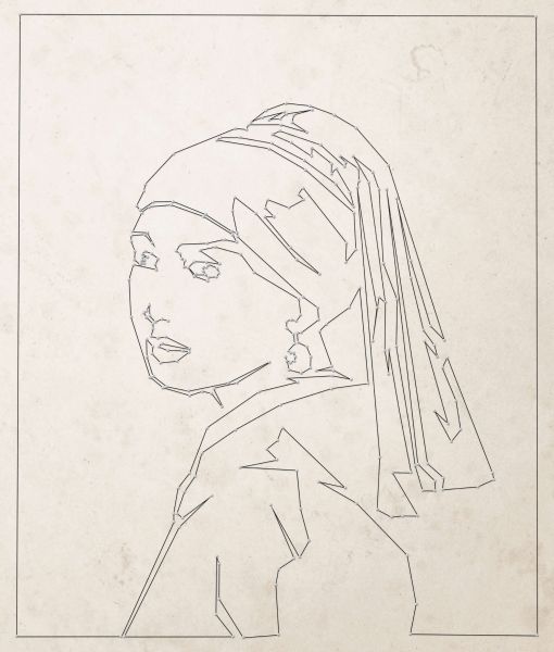 Het beroemde schilderij "Het meisje met de parel" op een prikbord. Deze oude meester hebben wij in en nieuw jasje gestopt. Haal dit verfrissende design nu in huis!