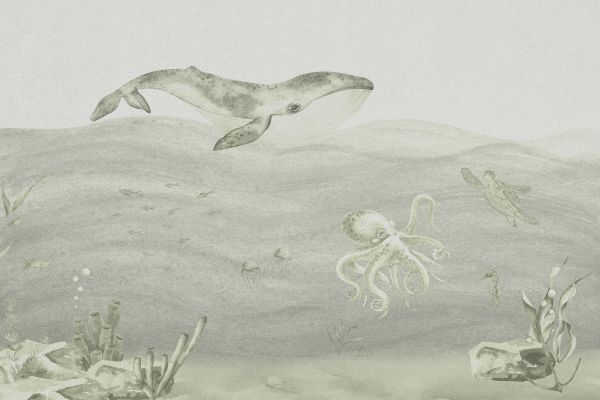 Onderwater wereld met een walvis en octopus in de kleur groen.