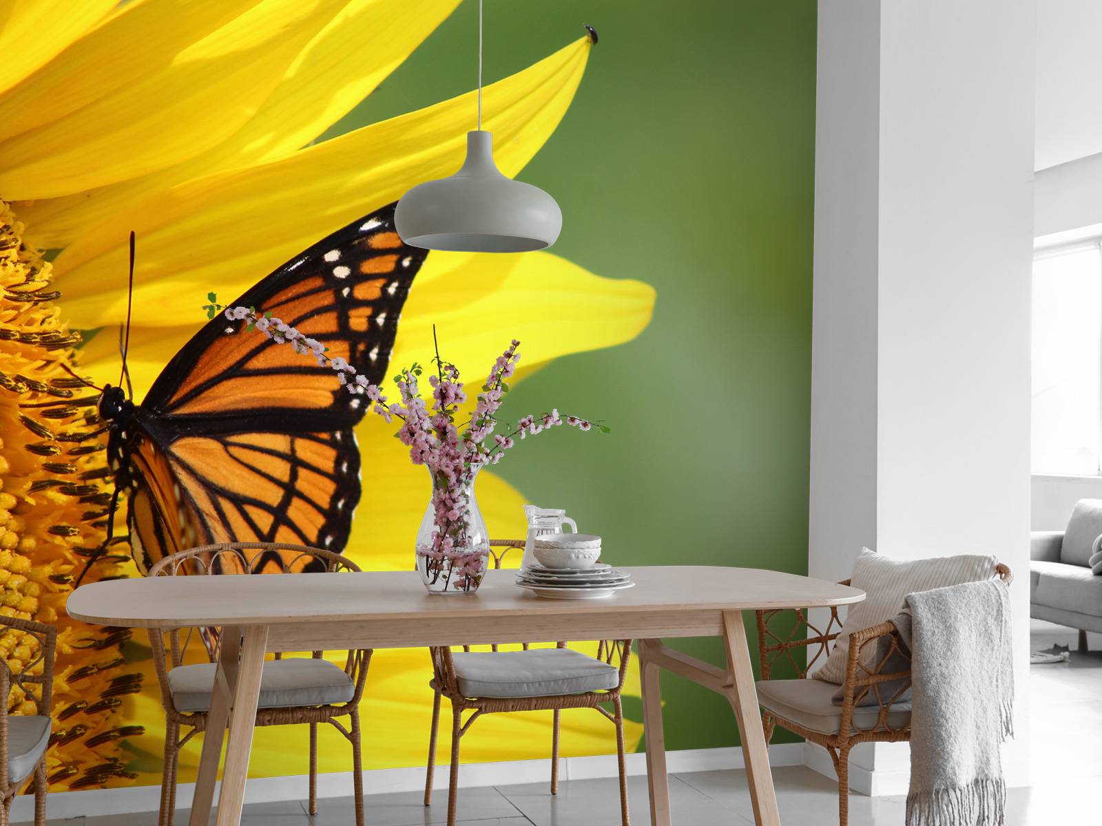 Oranje Vlinder op Zonnebloem in verschillende materialen