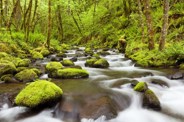 Rivier met veel stroming door het regenwoud in verschillende materialen