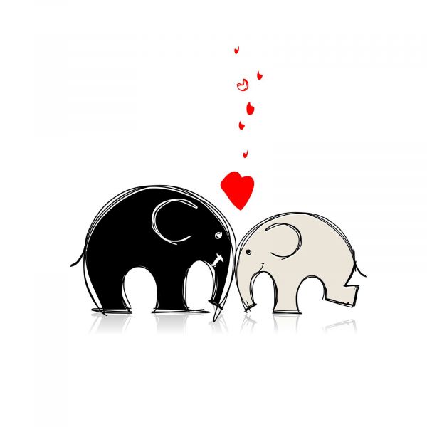 Schets van verliefde olifanten