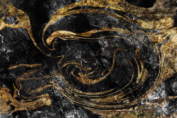 Verfmengsel met gouden verf fotobehang