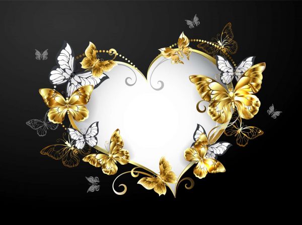 Versierd hart met witte en gouden vlinders