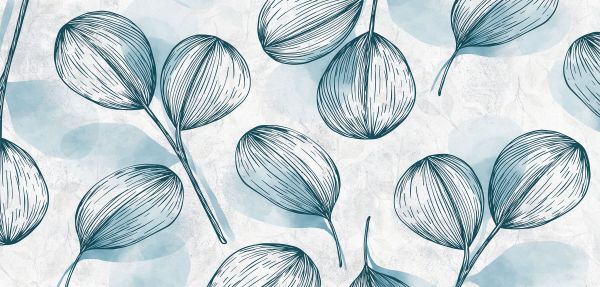 Een patroon van blauwe bladeren op een lichte betonstructuur.