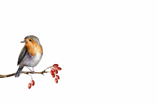 Vogeltje op een takje met een witte achtergrond fotobehang