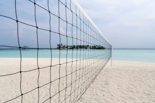 Volleybalnet op een Tropisch strand in verschillende materialen