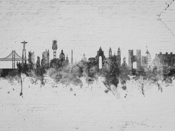 Een waterverf skyline van Lissabon in Urban stijl. De skyline is te bestellen met verschillende achtergronden.
