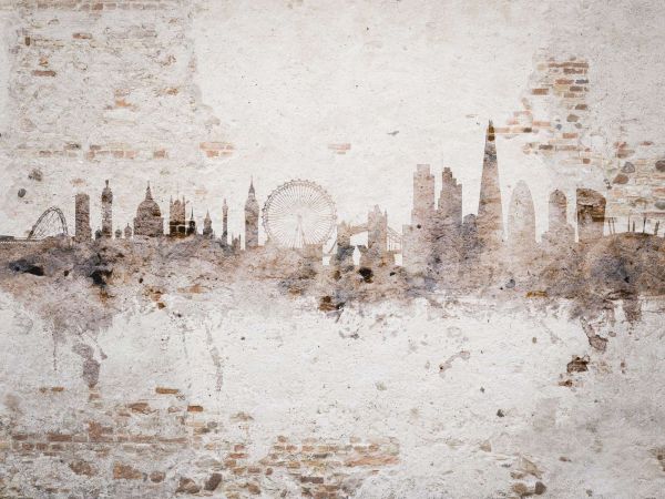 Een waterverf skyline van Londen in Urban stijl. De skyline is te bestellen met verschillende achtergronden.