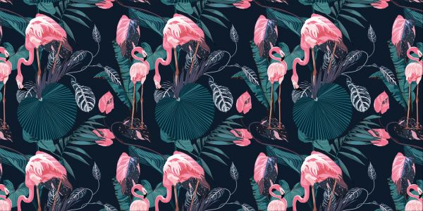 Wilde roze flamingo's in verschillende materialen