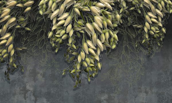 Fotobehang - Witte bloemkelken op een donkergrijze betonstructuur