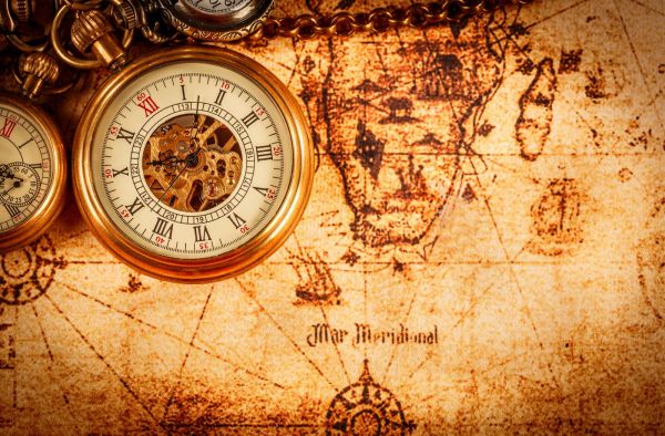 Zakhorloge op een wereldkaart