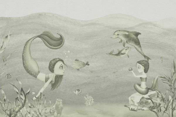 Onderzee dieren met twee kleine zeemeerminnen in de kleur groen.