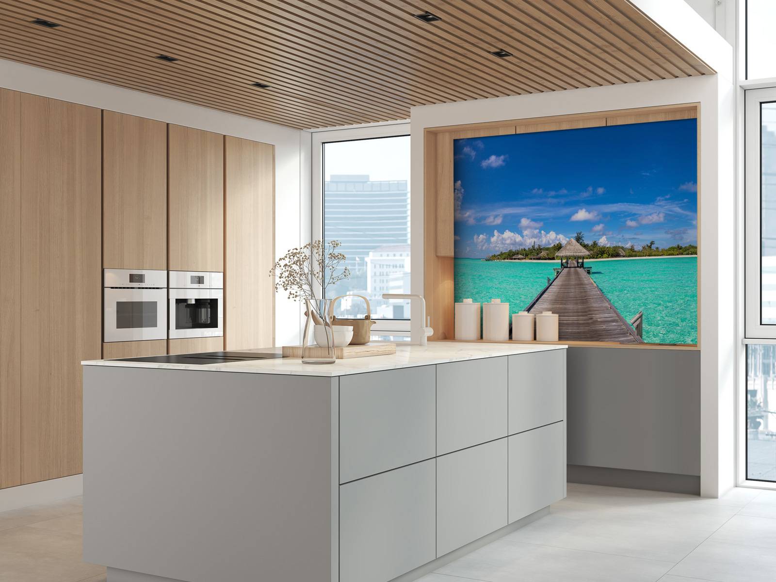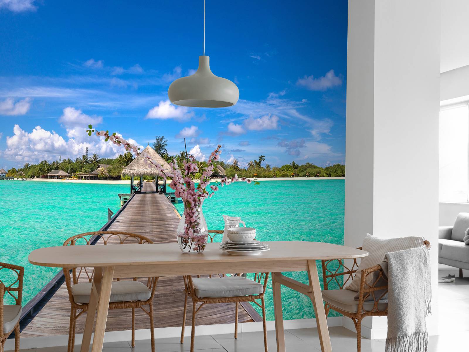 Zeesteiger aan een tropisch eiland in verschillende materialen