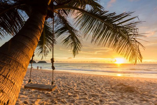 Palmboom bij zonsondergang