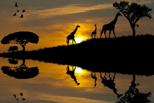 Zonsondergang in een tropisch gebied in verschillende materialen