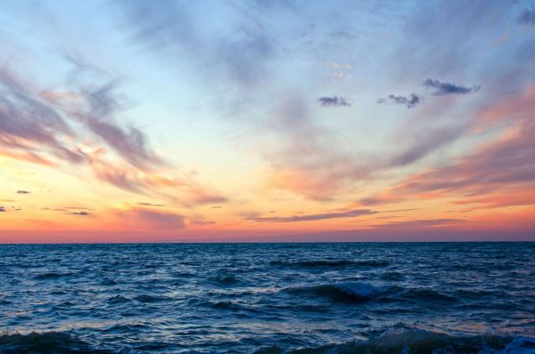 Zonsondergang op open zee