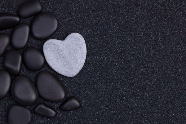Zwarte stenen met grijze hartvormige steen in verschillende materialen